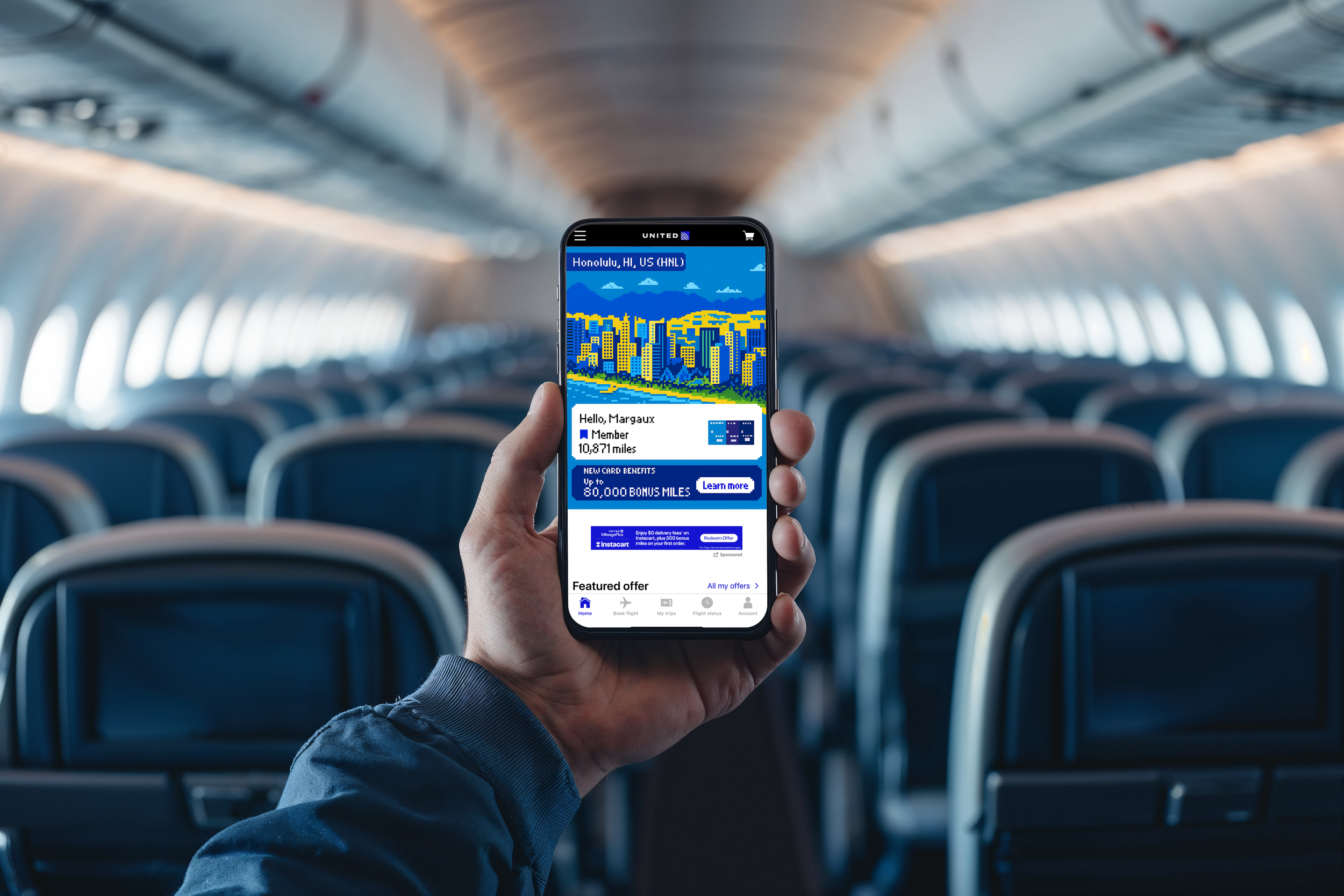 The redesigned United app comes to life when passengers turn on airplane mode.