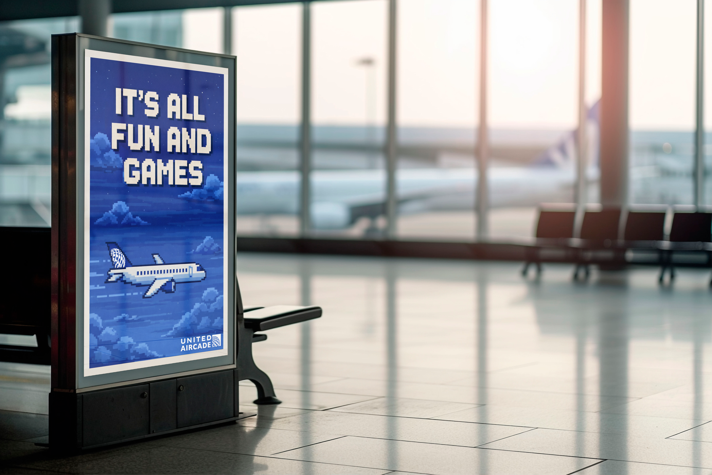 Generally, air travel is just a painful process to get through. United Airlines decided that flying should be an event itself, a journey that goes beyond “Point A to Point B”. From airport to airspace, the whole flying experience has been transformed into an 8-bit adventure, ending with a flight-wide gaming challenge that ends in real-life prizes. Welcome to United Aircade.