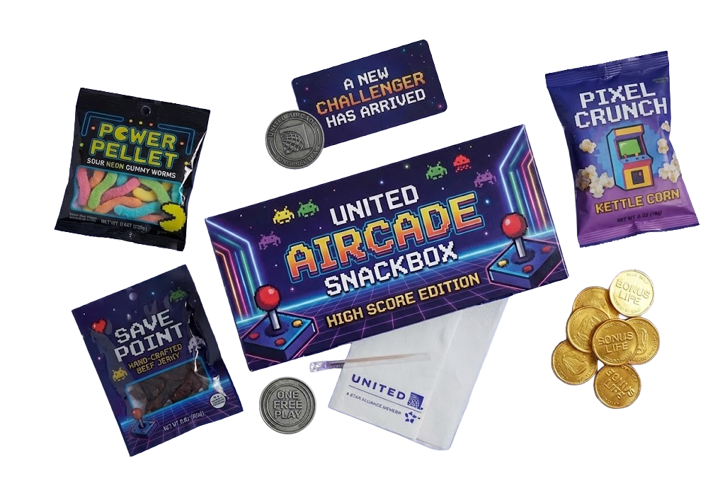 Because the Aircade is a gaming experience like none other, United is collaborating with Atari, the arcade game pioneers, to make special edition controllers and merch.